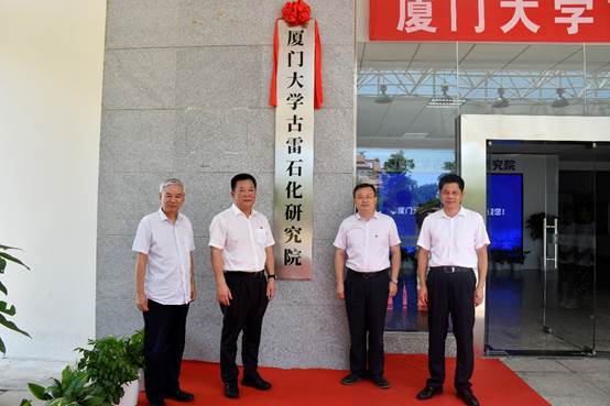 当日,厦门大学古雷石化研究院揭牌仪式在漳州校区举行。古雷港经济开发区党工委副书记詹伟、管委会副主任张庆东,漳州开发区管委会副主任林朝晖,我校校长张荣、副校长叶世满、副校长江云宝,嘉庚学院院长王瑞芳,化学化工学院党委书记宋毅、院长谢兆雄、副院长洪文晶,古雷经济开发区相关部门负责人,我校相关职能部门负责人,厦门大学漳州校友会校友代表,古雷石化研究院筹备小组成员,以及部分师生代表共同出席仪式。活动由叶世满主持。