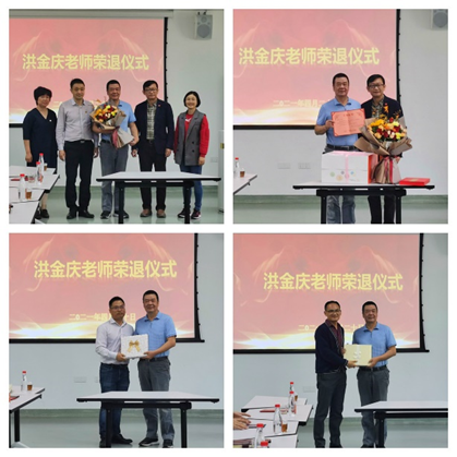 洪老师感谢学院领导、同事的认可与关怀。他说,大家精心准备的荣退仪式让自己深切感受到学院对退休教师群体的关爱与尊重。退休后,将尽己所能为学院的发展建言献策、贡献力量。