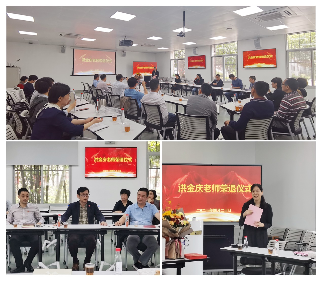 为弘扬尊师重教优良传统,增强教师的职业荣誉感,4月20日上午,学院为洪金庆老师精心组织了一场简短而温馨的荣退仪式。学院党委书记宋毅、副院长张昌胜、工会副主席方雪明,化学工程与生物工程系主任王远鹏、副主任黄加乐,化工实验中心主任张秋根、工业催化与能源化工研究所所长张洪良,工业催化与能源化工研究所和化工实验中心全体成员,来院挂职的闽南师范大学化学化工与环境学院副院长张茂升,以及来院访问的闽南师范大学化学物理与信息工程学院副院长张华林等,近30名老师出席仪式。活动由工业催化与能源化工研究所党支部书记孙道华主持。