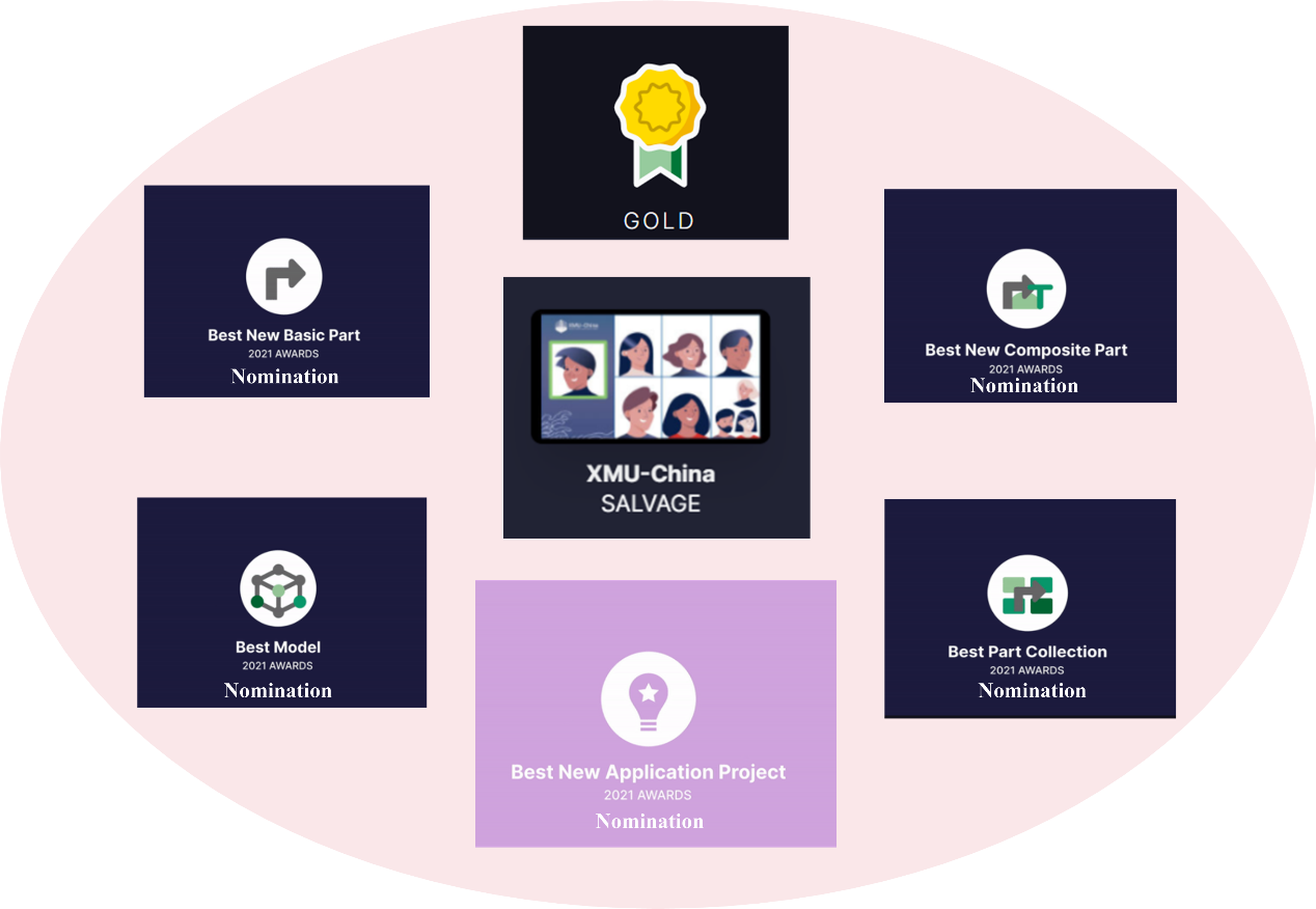 此次比赛中,厦门大学参赛团队收获了建队以来的第十一个金奖。同时获得最佳新应用奖Best New Application Project)的赛道奖提名,最佳生物砖收集Best Part Collection最佳新基础生物砖Best New Basic Part最佳复合生物砖Best New Composite Part最佳建模Best Model4项单项奖提名。